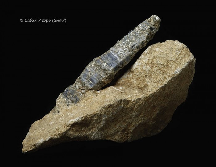 Кристалл корунда длиной 7,8 см на породе. Образец из коллекции Ковалева А.Е.