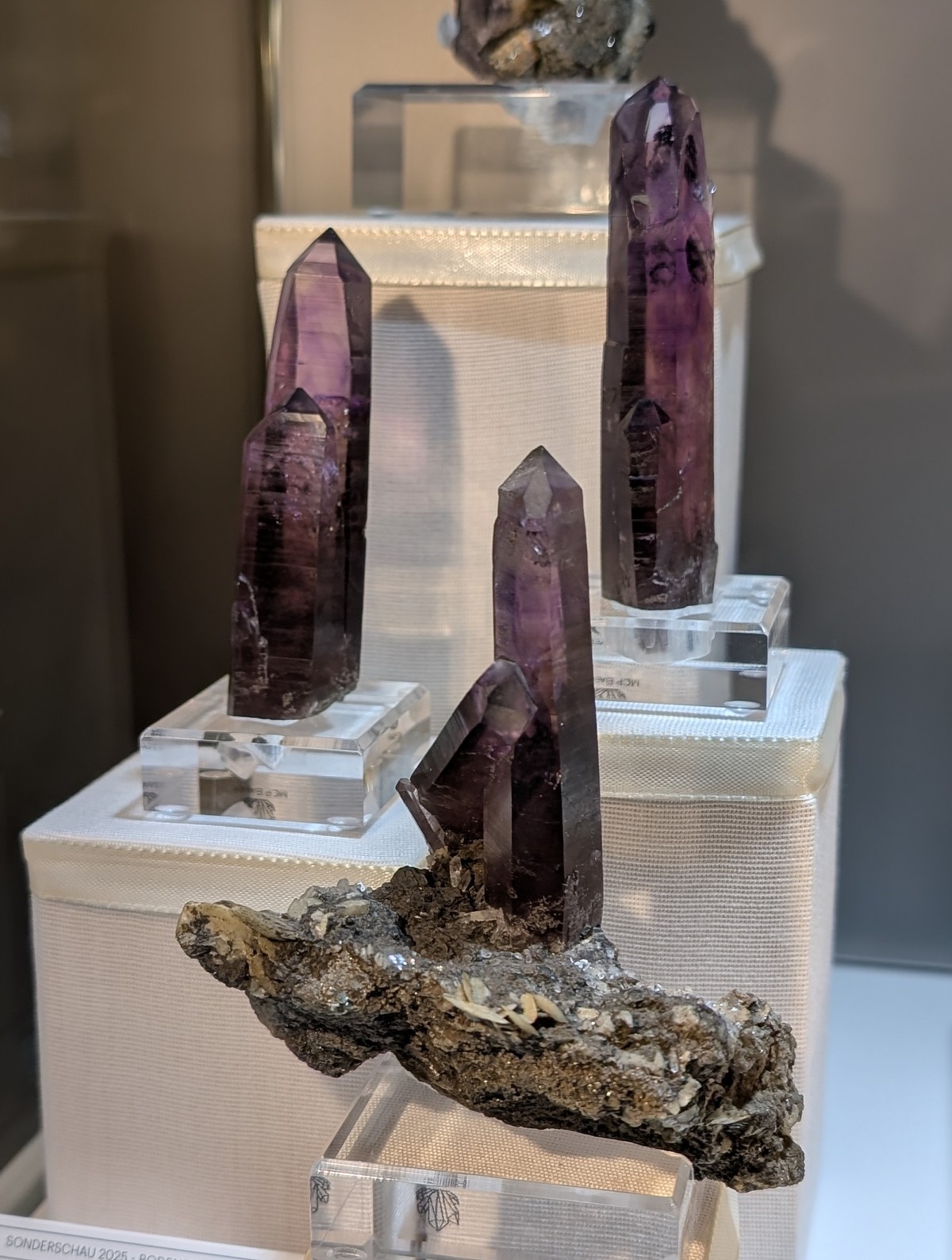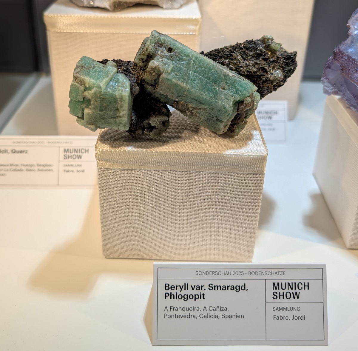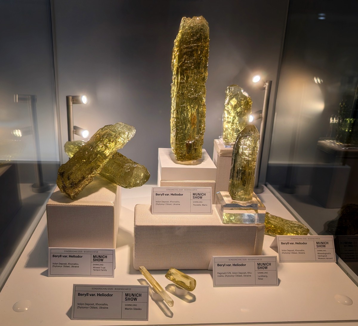 Помпезная витрина с кристаллами волынских бериллов. Все образцы из европейских частных коллекций.