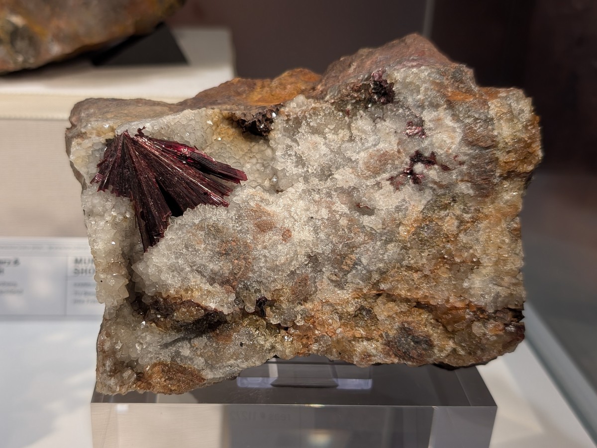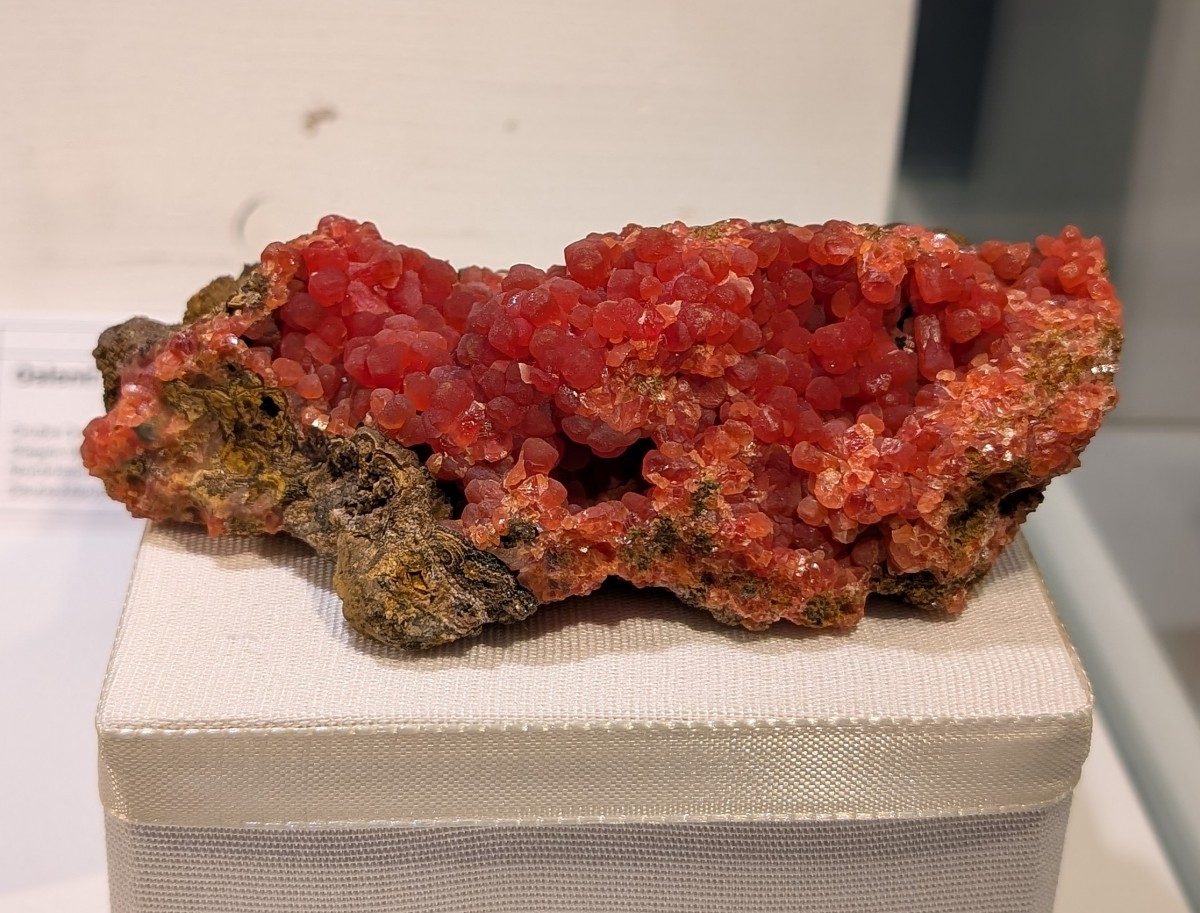Сросток кристаллов эритрина в полости кварцевой жилы. Daniel Mine, Schneeberg, Saxony, Germany. Музей Горной академии во Фрайберге.