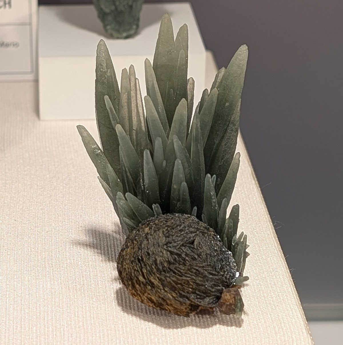 Крупный (около 6 см), хорошо ограненный кристалл пиросмалита с места первой находки этого минерала. Nordmark, Filipstad, Varmland, Sweden. Образец из коллекции Шведского музея естественной истории.