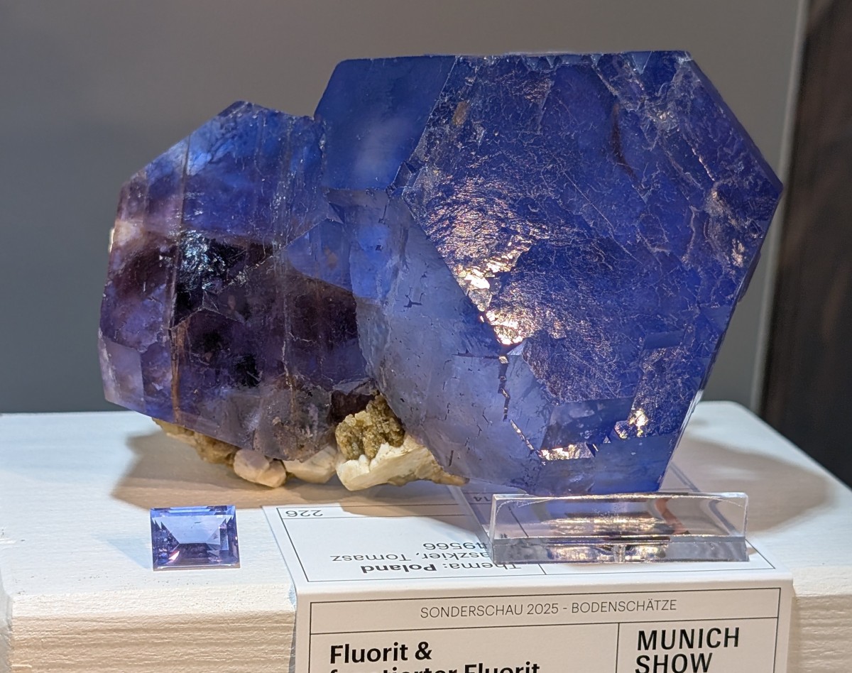 Сросток кристаллов флюорита и огранка из него же. Grabina 1 Quarry, Strzegom, Poland.