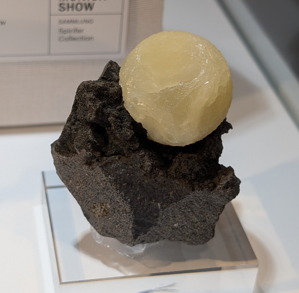 Сферокристалл кальцита на стенке полости в базальте. Grabiszyce Quarry, Gmina Lesna, Lower Silesia, Poland.