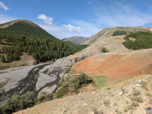 Слияние реки Сары-Гиматы (справа) и Устю-Гиматы (слева), в которую выше по течению впадает ручей Белатр. Когда-то здесь проходила дорога, но сегодня проехать можно только на лошади или мотоцикле.