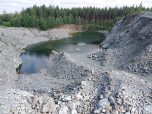 По западному борту карьера обнажаются малоизмененные ожелезненные известняки, а по правому (восточному) неизменные и скарнированные вулканиты.