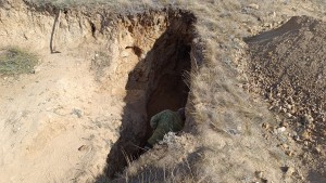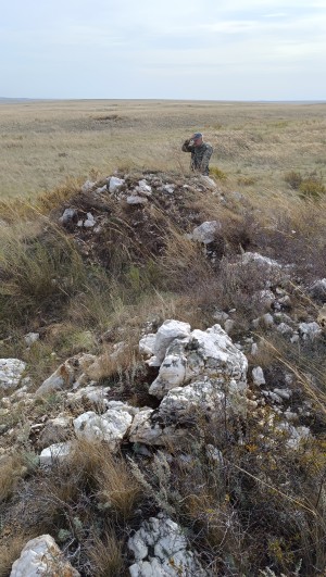Осмотр отвалов оставшихся от разведки небольшой кварцевой жилы. Северный фланг месторождения, р-н горы Нурбай.