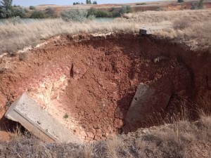 Обвалившееся перекрытие шахтного ствола. Участок Джаман-Акжар.