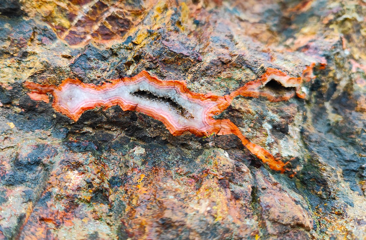 Трещины выполненные агатом в коре выветривания серпентинитов