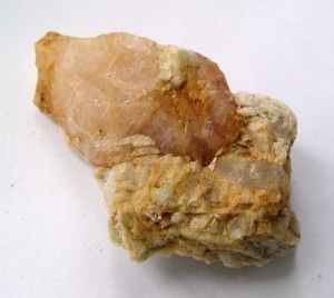 Хорошо ограненный прозрачный кристалл розоватого воробьевита и белые кристаллы альбита на сростке кристаллов кварца. Находки 1989-1990г. Препарирование 2020г.