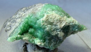 Корочка ярко-зелёного ферроварисцита на стенке трещины в сланце.