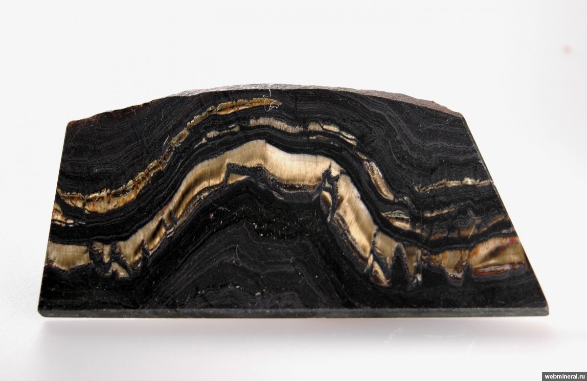 Полированная пластина железистого кварцита в прожилками "кошачьего глаза".