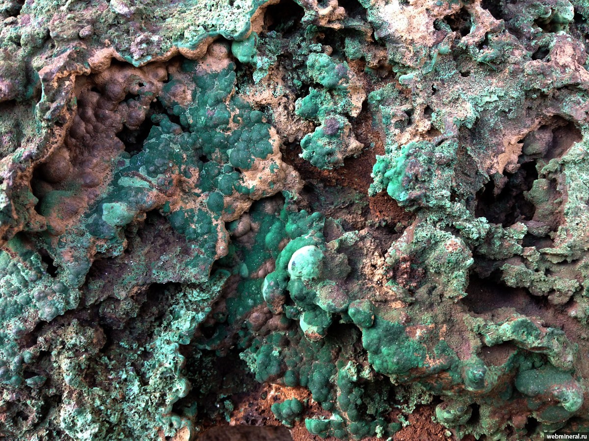 Корка почковидного малахита толщиной до 1,5 см на породе.