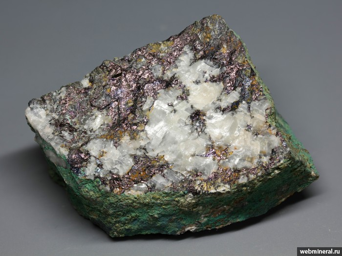 Фотография минерала Борнит, Кальцит. Юлия Медная (Cu) месторождение.