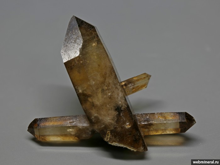 Небольшой сросток кристаллов кварца из миаролы в гранитном пегматите. Цвет кварца дымчатый с цитриновым оттенком.