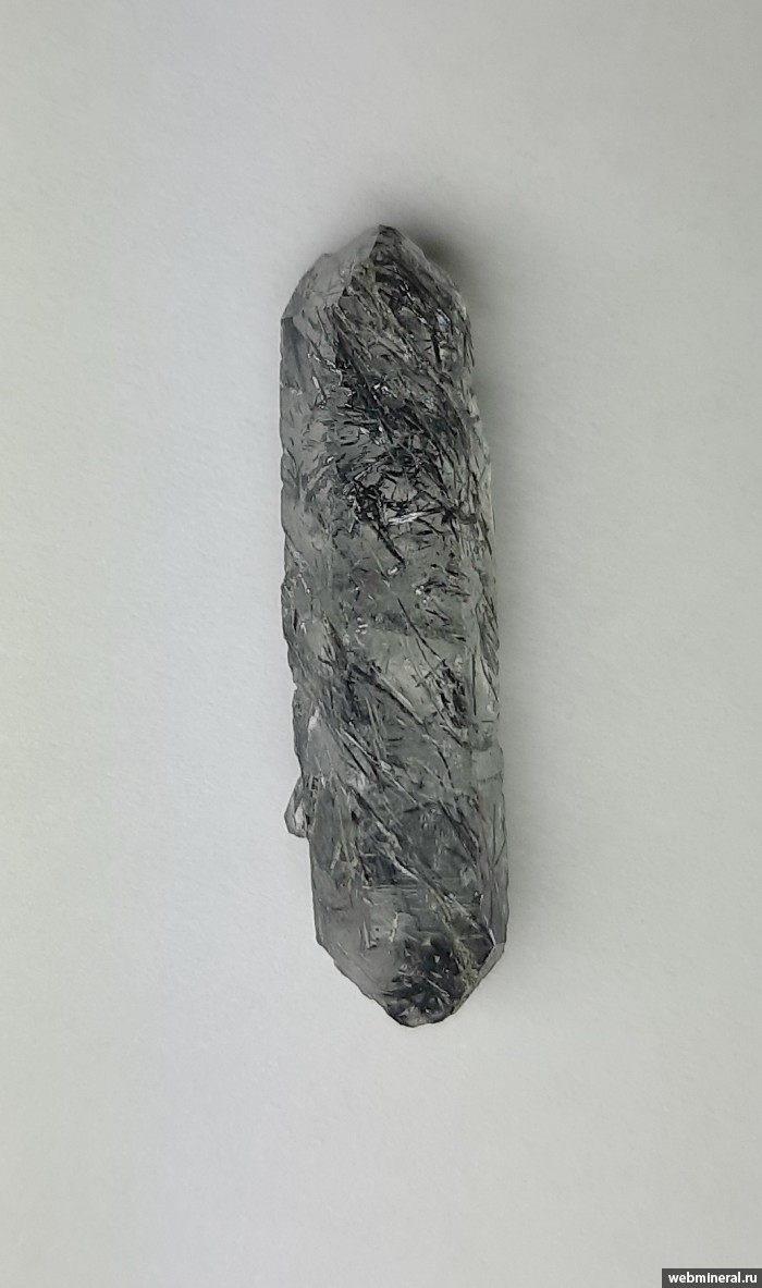 Кварц-"волосатик". Двухголовый кристалл горного хрусталя с включениями буланжерита