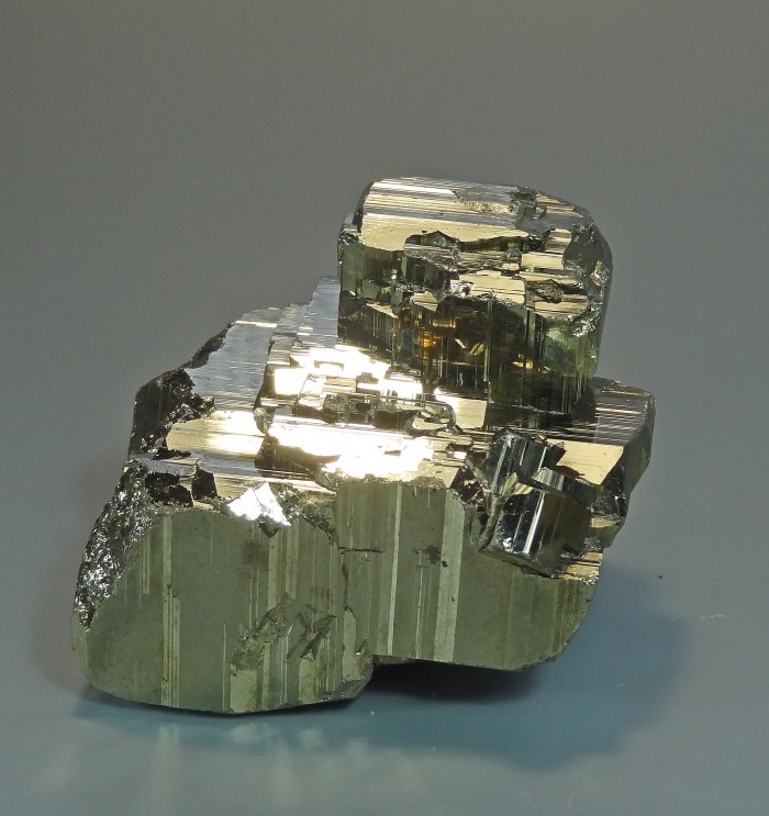 Уплощенный сросток кристаллов пирита с хорошим блеском.
