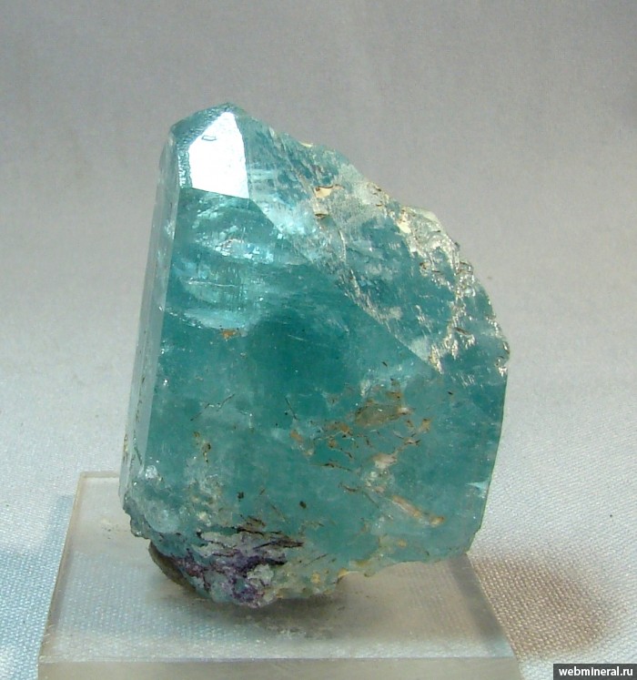 Голубой прозрачный кристалл топаза с небольшим количеством фиолетового флюорита