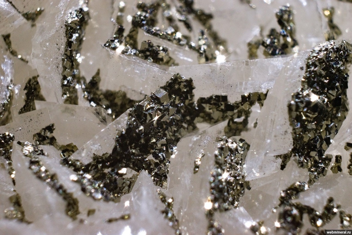 Фотография минерала Пирит, Кальцит. Новоширокинское месторождение.