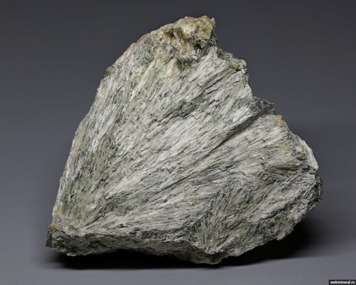 Веерообразный сросток тонколучистого зеленовато-серого актинолита.