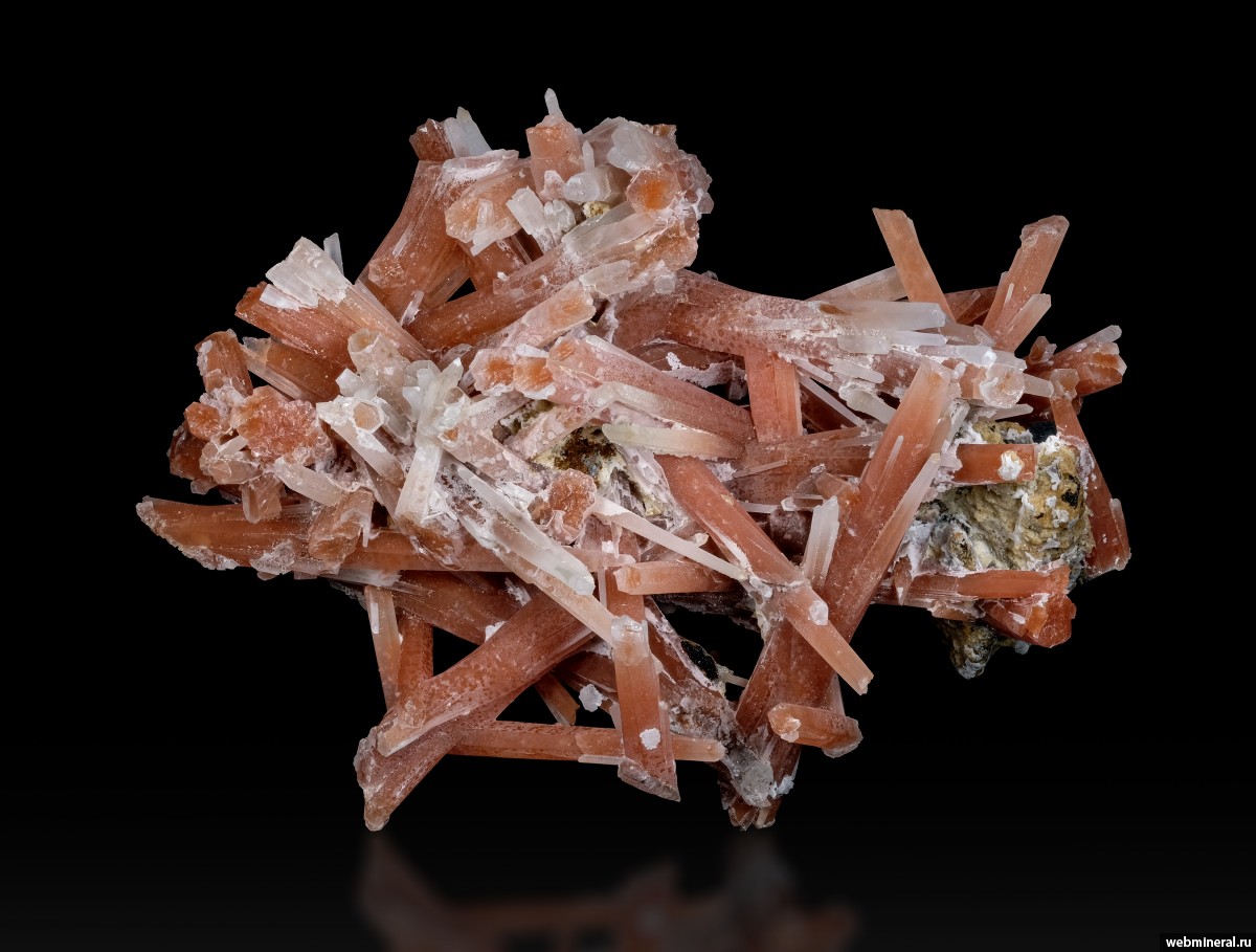 Сросток тонкопризматических кристаллов красного кварца. Старые сборы.