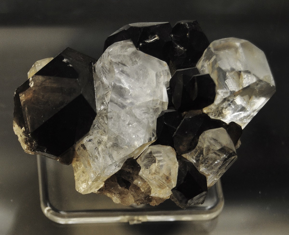 Небольшая друза топаза и мориона. Минералогический музей им. А.Е. Ферсмана, № 26204, Иосса В.А., 1918 г. Фото - 2015 г.