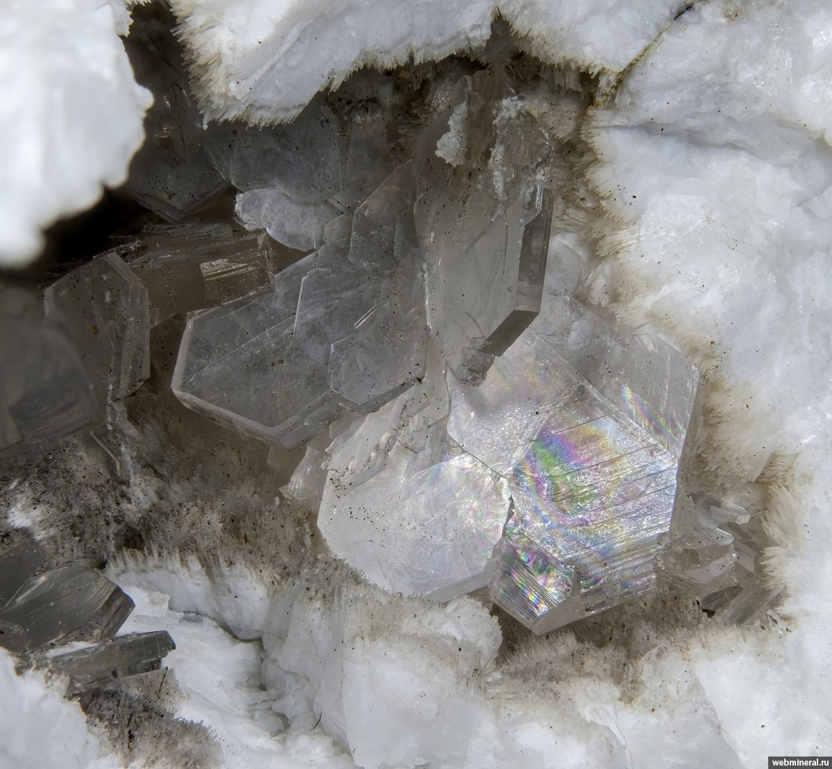 Совершенные шестигранники гиббсита размером до 5 мм в каверне шпреуштейна (псевдоморфоза натролита по нефелину).