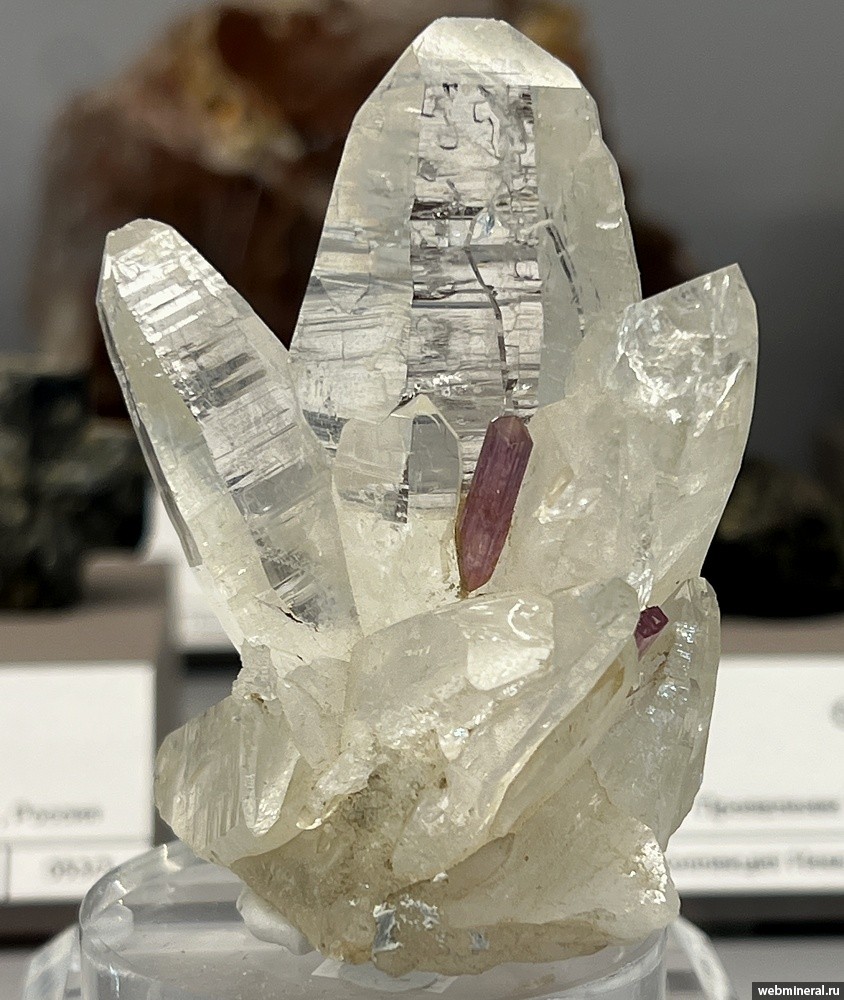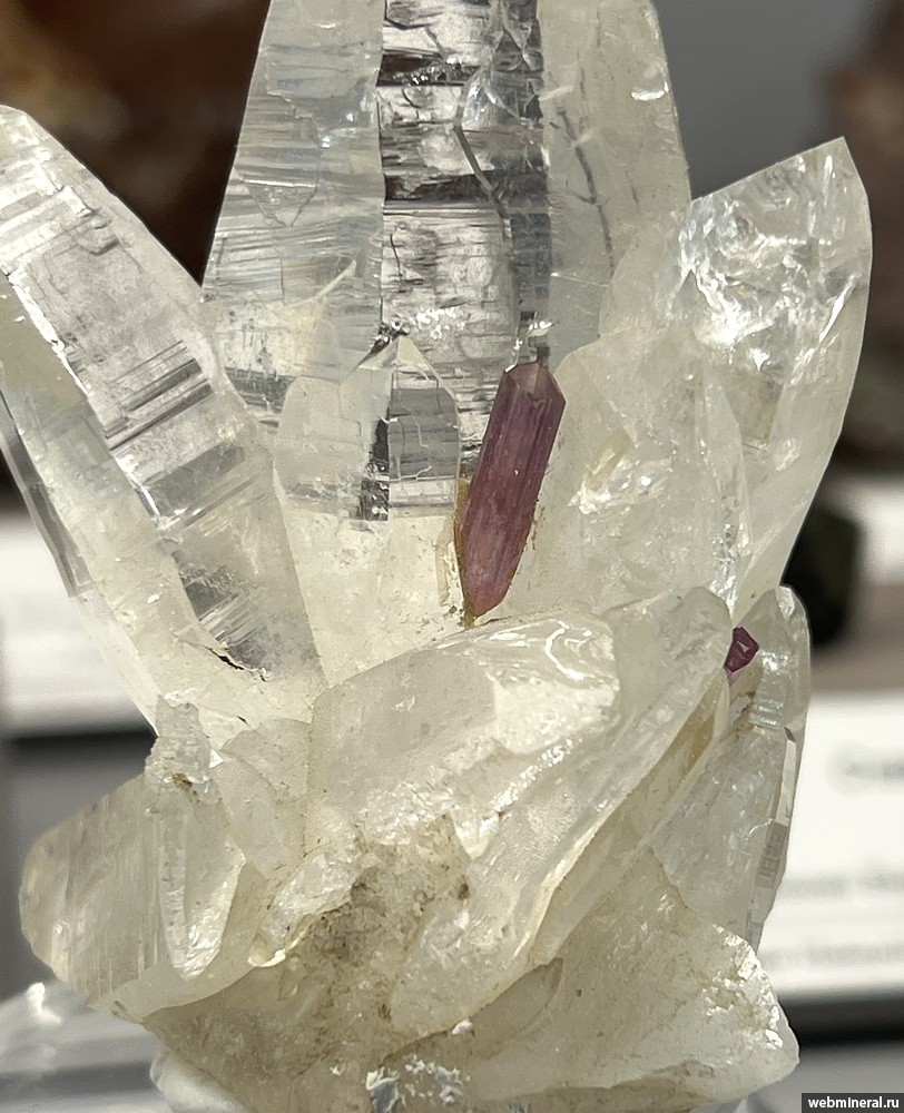 Друза кристаллов бесцветного кварца с кристаллами розового топаза длиной до 1,5 см. Образец из коллекции Немцова И.А.