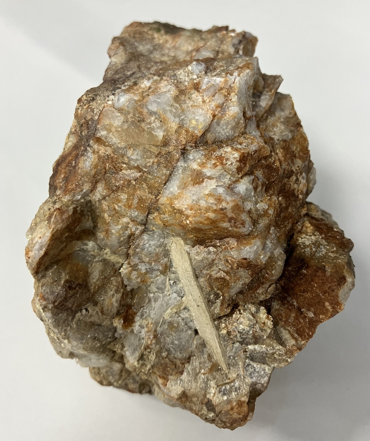 Псевдоморфоза бисмутита светло-желтого цвета по кристаллу висмутина. Сохранились следы первоначальной продольной штриховки кристалла. Подобные образцы весьма часты на месторождении, однако редко удачно препарируются.