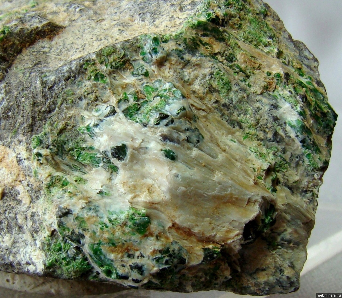 Фотография минерала Андрадит разн. (Демантоид), Магнезиохромит. Песчанские хромитовые рудники.