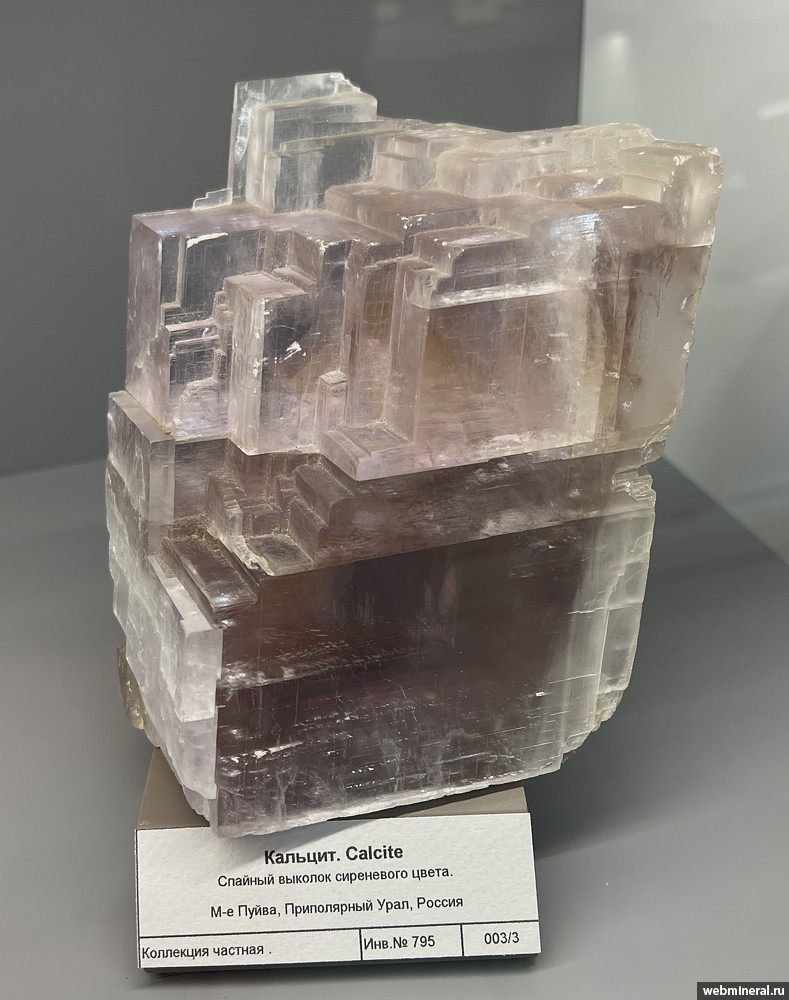 Спайный выколок кальцита сиреневого цвета. Образец из частной коллекции.