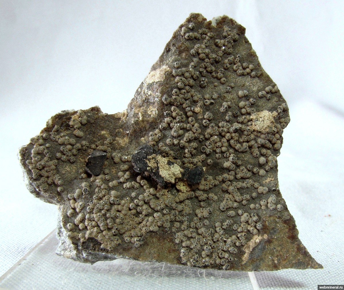 Сферолиты кронстедтита размером до 1,5 мм в ассоциации с магнетитом (кристаллы в центре образца).