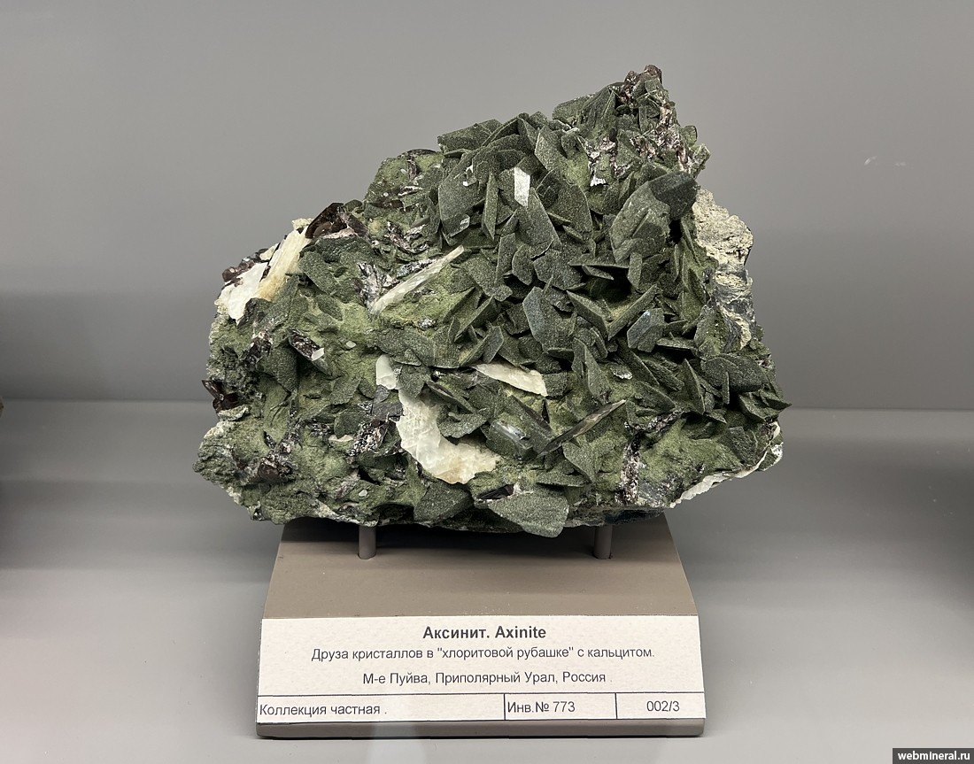 Фотография минерала Аксинит-(Fe), Кальцит, Хлорит. Пуйва месторождение.