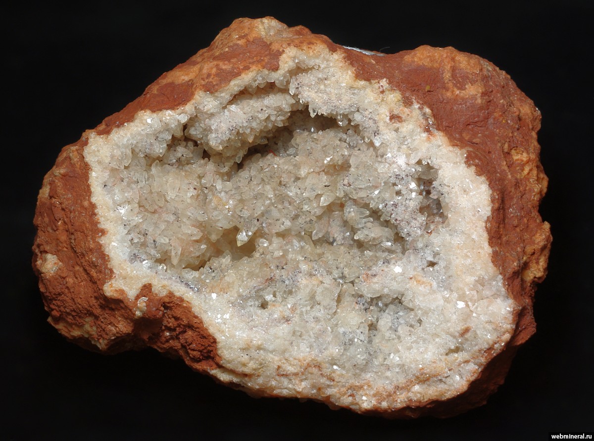 Жеода кристаллов кальцита из конкреции красного боксита. Типичный образец для месторождения.