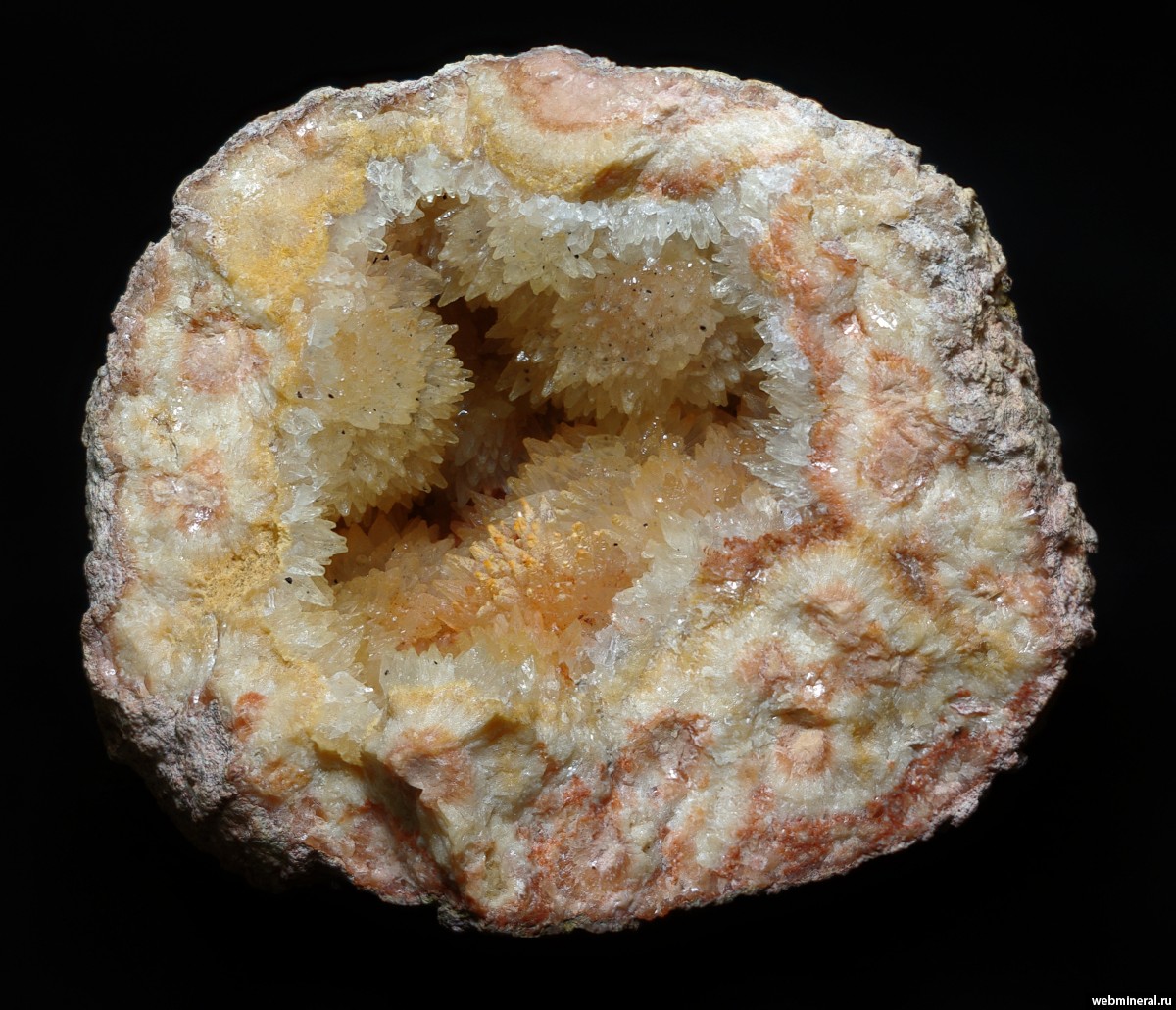 Жеода кристаллов кальцита в карбонатной конкреции из бокситов.