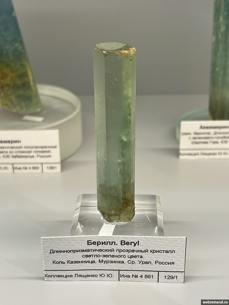 Прозрачный кристалл берилла светло-зеленого цвета. Образец из коллекции Лященко Ю.Ю.