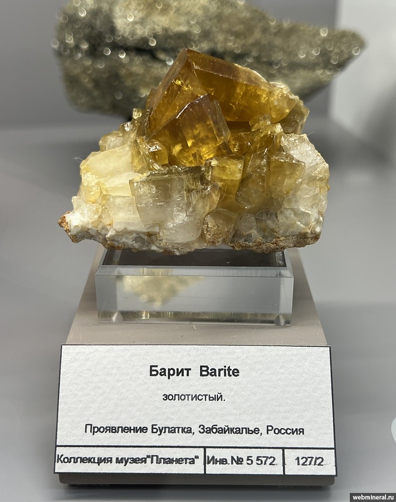 Друза кристаллов золотистого барита. Образец из коллекции музея "Планета".