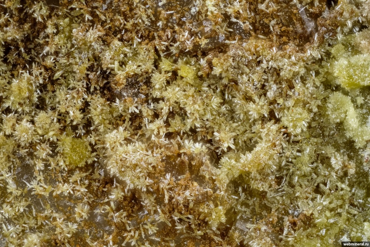 Корочка на кварце из весьма мелких-до 0,3 мм, кристаллов миметизита.