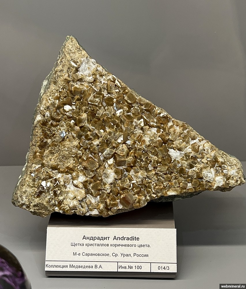 Щетка коричневых кристаллов андрадита размером до ~ 9 мм. Образец из коллекции Медведева В.А.
