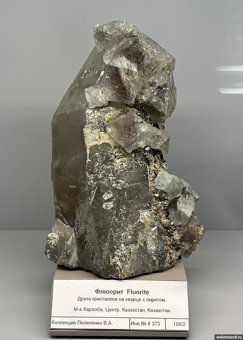 Кристаллы флюорита размером до 3 см на кварце с пиритом. Образец из коллекции Пелепенко В.А.