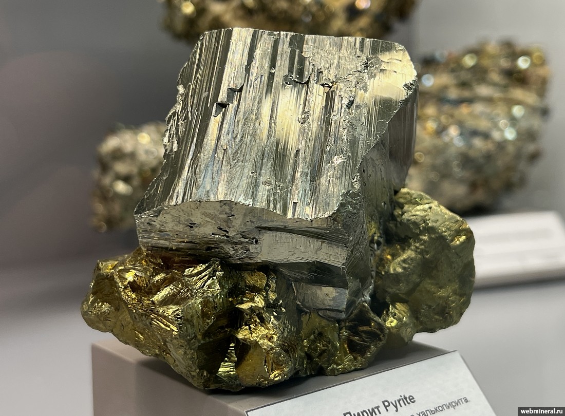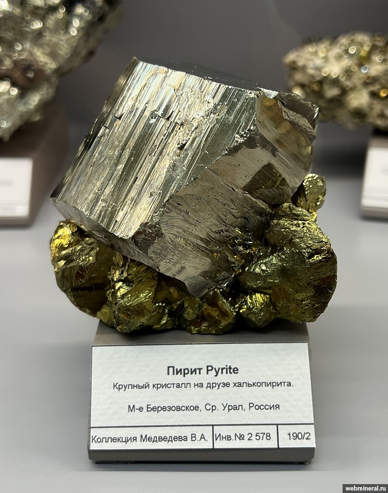 Крупный кристалл пирита на друзе халькопирита. Образец из коллекции Медведева В.А.