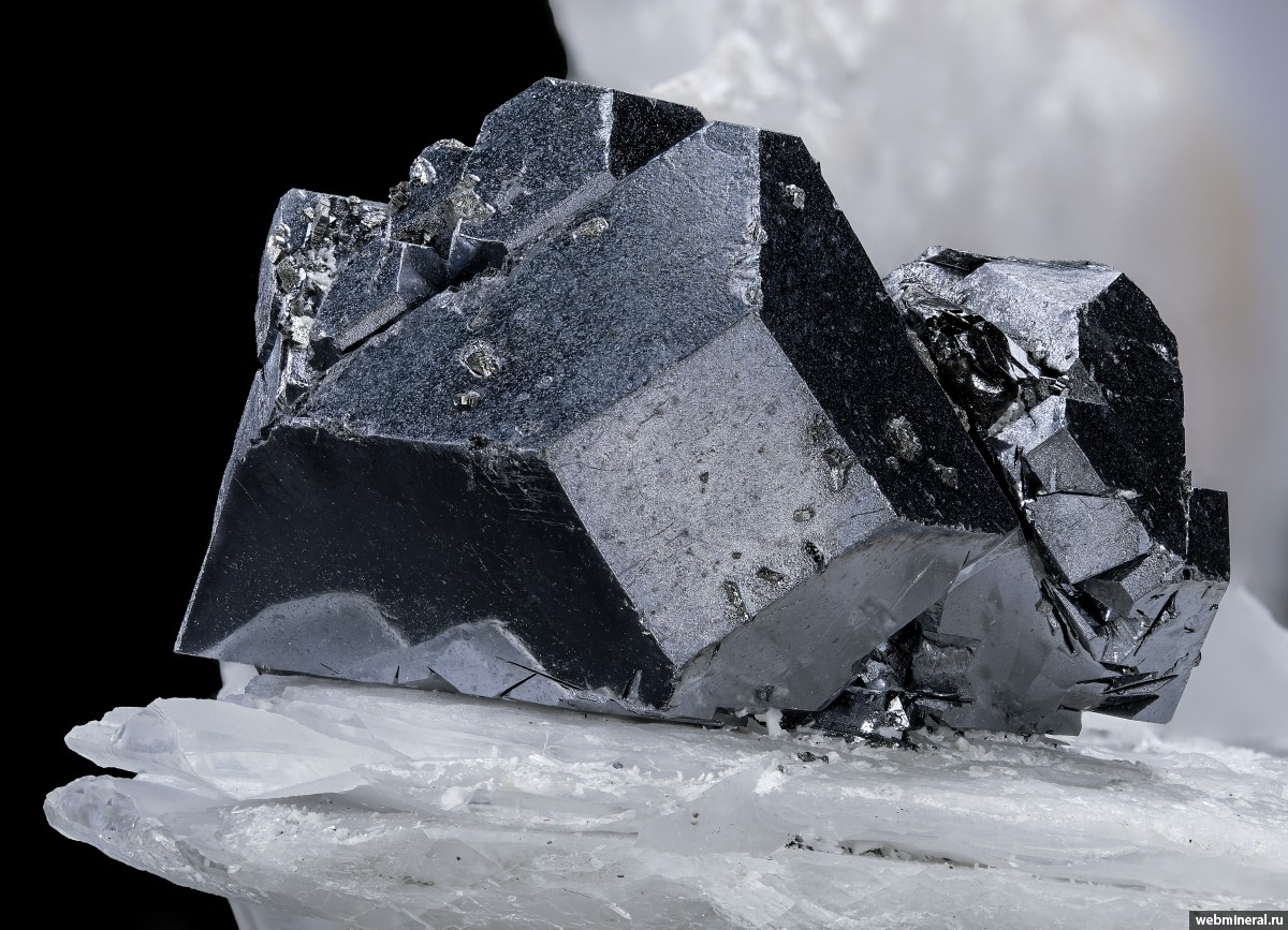 Сросток кристаллов галенита размером 26 мм на кальците, в ассоциации – сфалерит. Старые сборы.