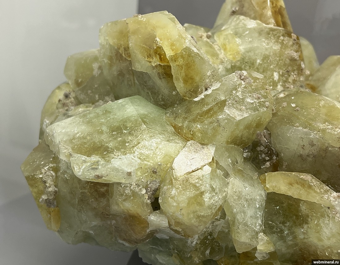 Друза крупных кристаллов датолита желтого цвета. Образец из коллекции Медведева В.А.