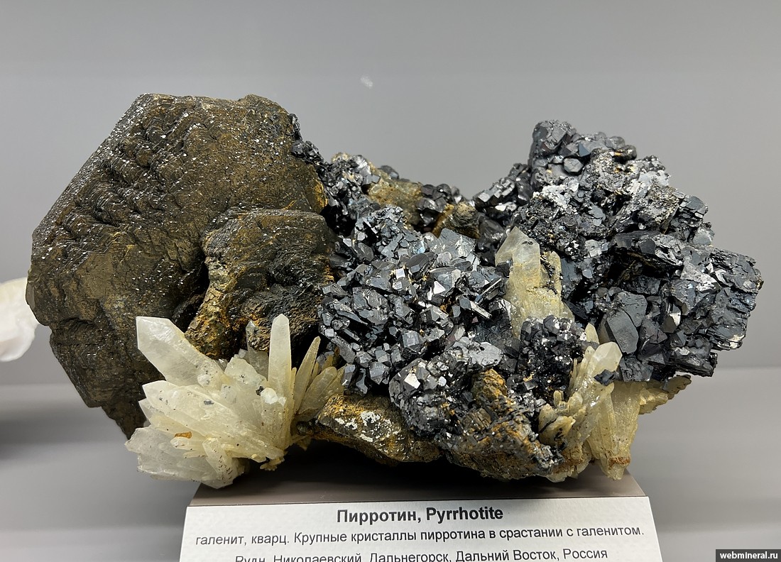 Крупные кристаллы пирротина в срастании с галенитом и кварцем. Образец из коллекции Зоммера Б.К.