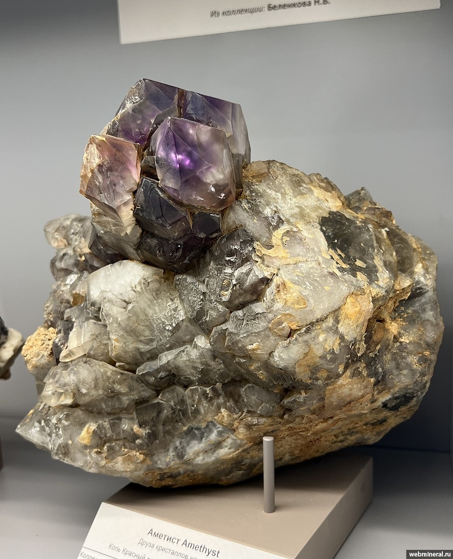Друза кристаллов аметиста на кварце. Находка до 1941 года. Образец из коллекции Беленкова Н.Б.