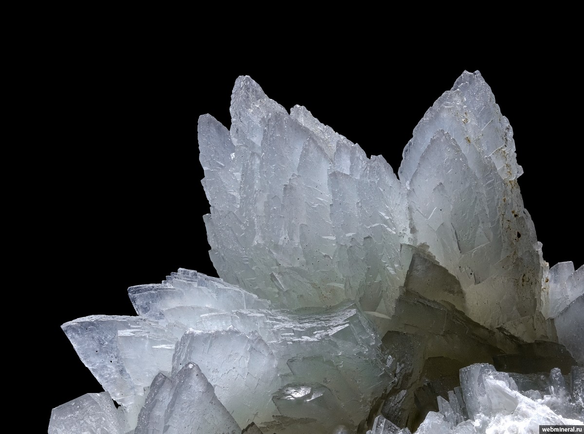Сросток расщеплённых кристаллов серо-голубого барита. Образец демонстрирует цветовую нестабильность: после добычи, на солнечном свету, жёлтый цвет перешёл в серо-голубой. Сборы Абдуллаева Г.А., 2025 год.