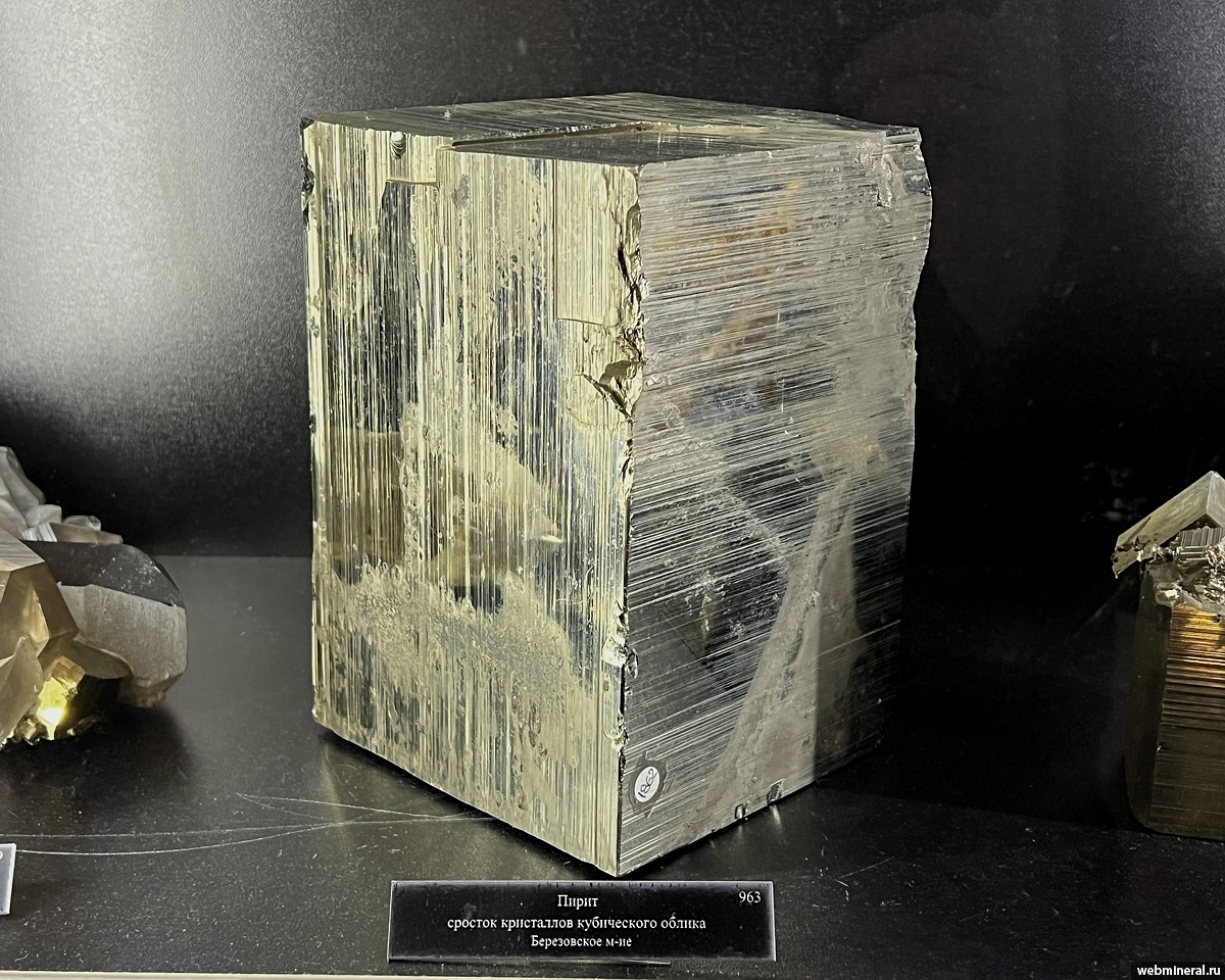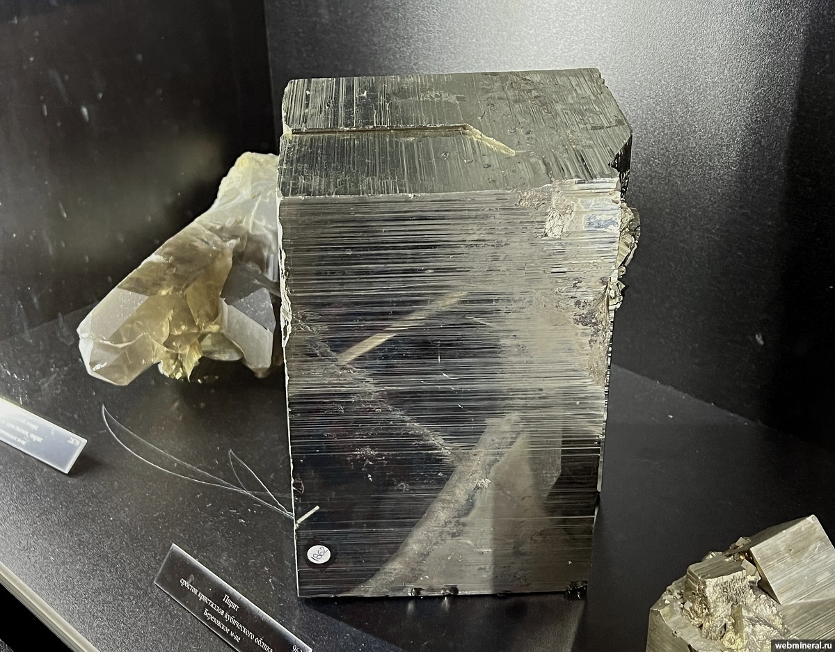Крупный кристалл пирита с характерной штриховкой на гранях. Образец из коллекции Пелепенко В.А.