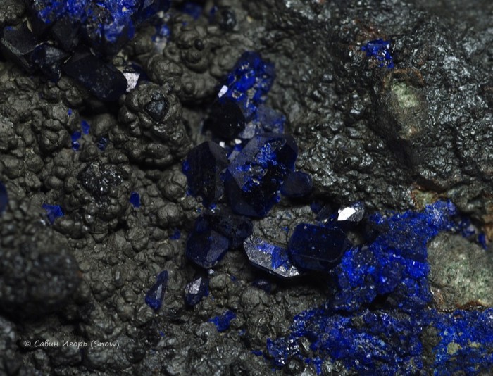 Кристаллы азурита размером до 4 мм на породе.
