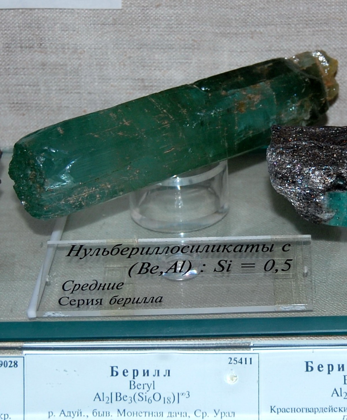 Кристалл берилла. Минералогический музей им. А.Е. Ферсмана РАН, № 25411, Ферсман А.Е., 1926 г. Фото - 2009 г.