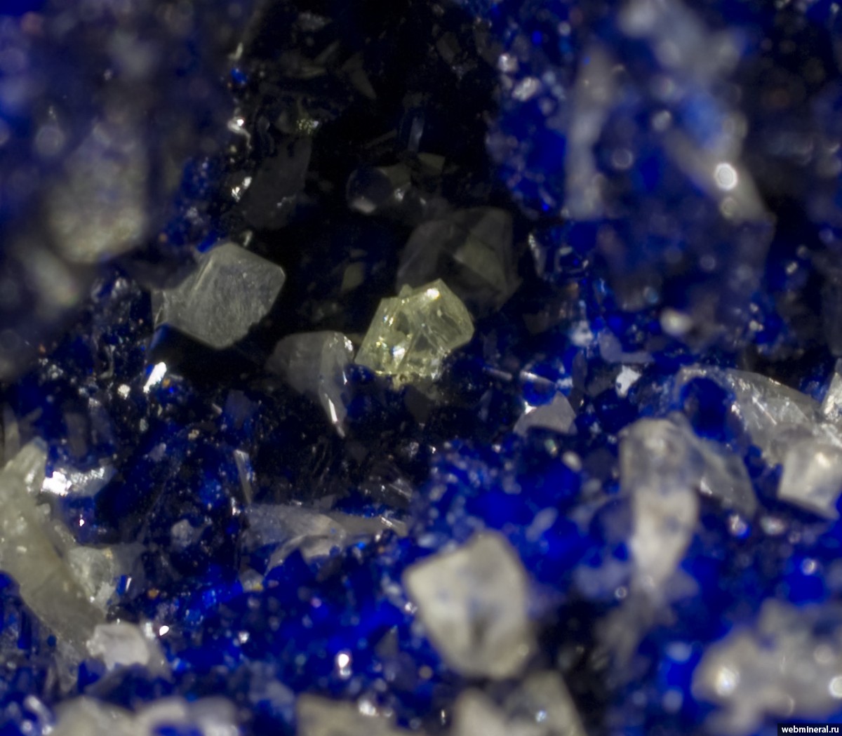 Кристалл желтоватого йодаргирита на азурите с церусситом.