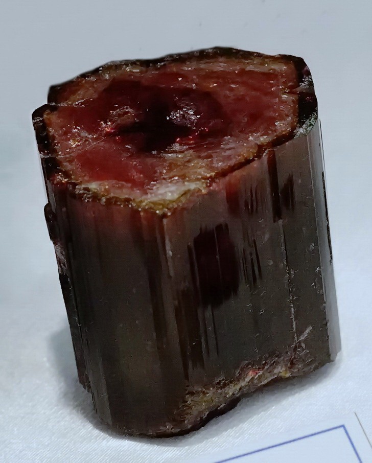 Кристалл эльбаита. Вероятно с Шерловой копи с жилы Старательская. Образец геологического музея Уральского государственного горного университета. Фото - апрель 2015.