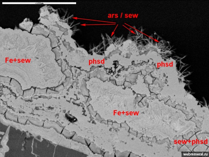 Roberts A.C., Cooper M.A., Hawthorne F.C., Criddle A.J., Stirling J.A.R. Sewardite, CaFe3+2(AsO4)2(OH)2, the Ca-analogue of carminite, from Tsumeb, Namibia: description and crystal structure // Canadian Mineralogist, 2002, 40, 1191-1198